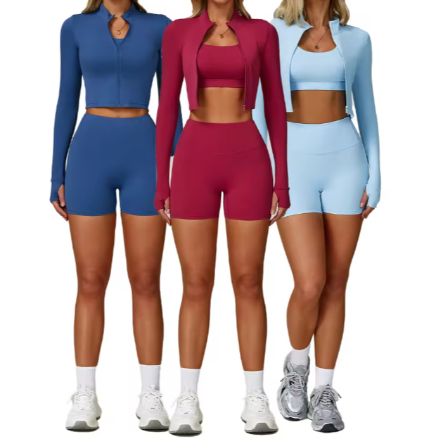 High Waist Yoga Pants Set for Ladies Sports Outdoor Fitness Suit Tight With Summer 3-piece Set