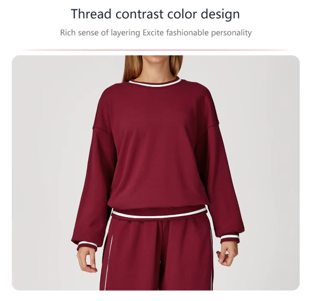 Women's Casual Fall/Winter Suit With Contrast Sweater and Above Knee Sports Pants Comfortable Outdoor Fashion Top